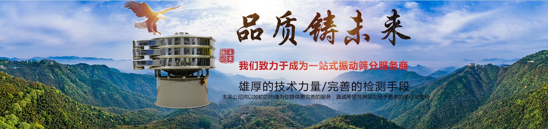 完美品質(zhì)鑄就未來 新鄉(xiāng)市未來振動(dòng)設(shè)備有限公司**生產(chǎn)標(biāo)準(zhǔn)多層振動(dòng)篩,陶瓷泥漿專用振動(dòng)篩,面粉專用篩分機(jī),淀粉專用振動(dòng)篩,超聲波振動(dòng)篩,超靜音振動(dòng)篩等等振動(dòng)篩及其配套用振動(dòng)電機(jī),設(shè)備配件。 未來公司是生產(chǎn)振動(dòng)篩分設(shè)......
